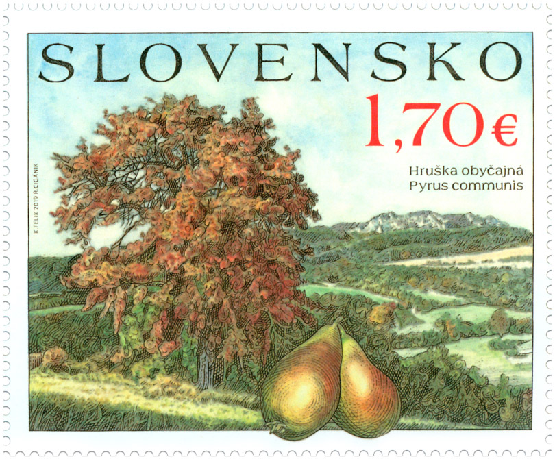 Slovenská pošta, a.s., vydá 11. októbra 2019 poštovú známku „Ochrana prírody: Ovocné stromy – hruška obyčajná“, s nominálnou hodnotou 1,70 €.