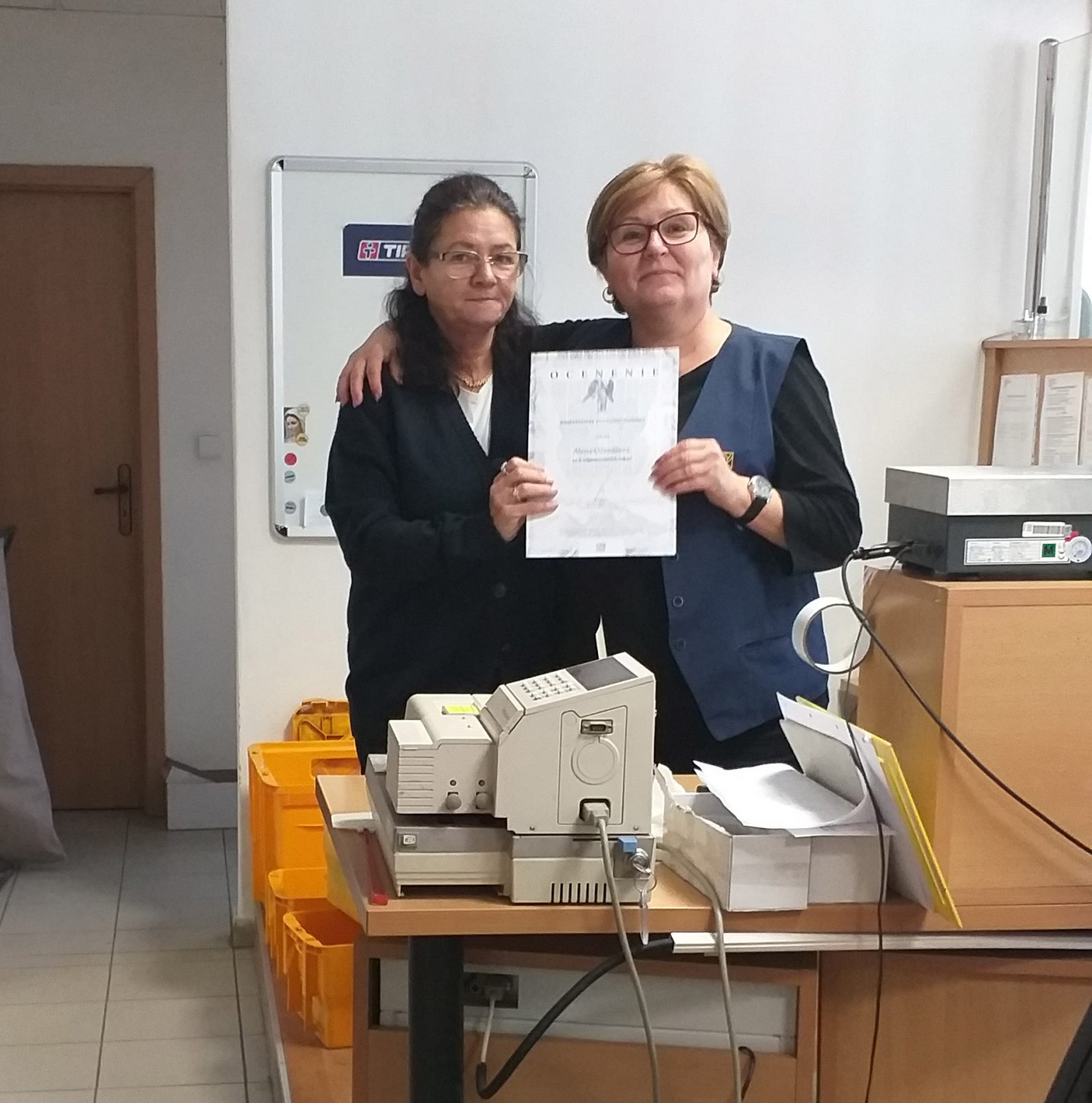 poďakovanie mojej pracovníčke Alene Očenášovej a zároveň jej odovzdávam ďakovný