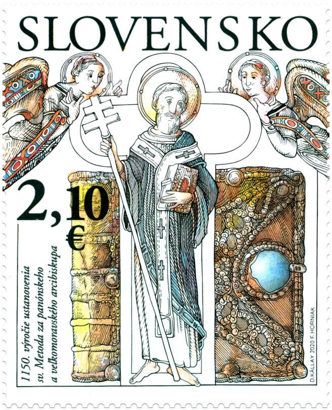 poštovej známky je zobrazenie sv. Metoda inšpirované najstaršími známymi