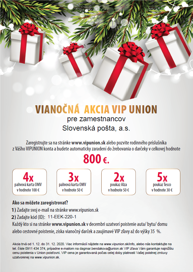 Vianočná akcia VIP Union pre zamestnancov Slovenská pošta, a.s.