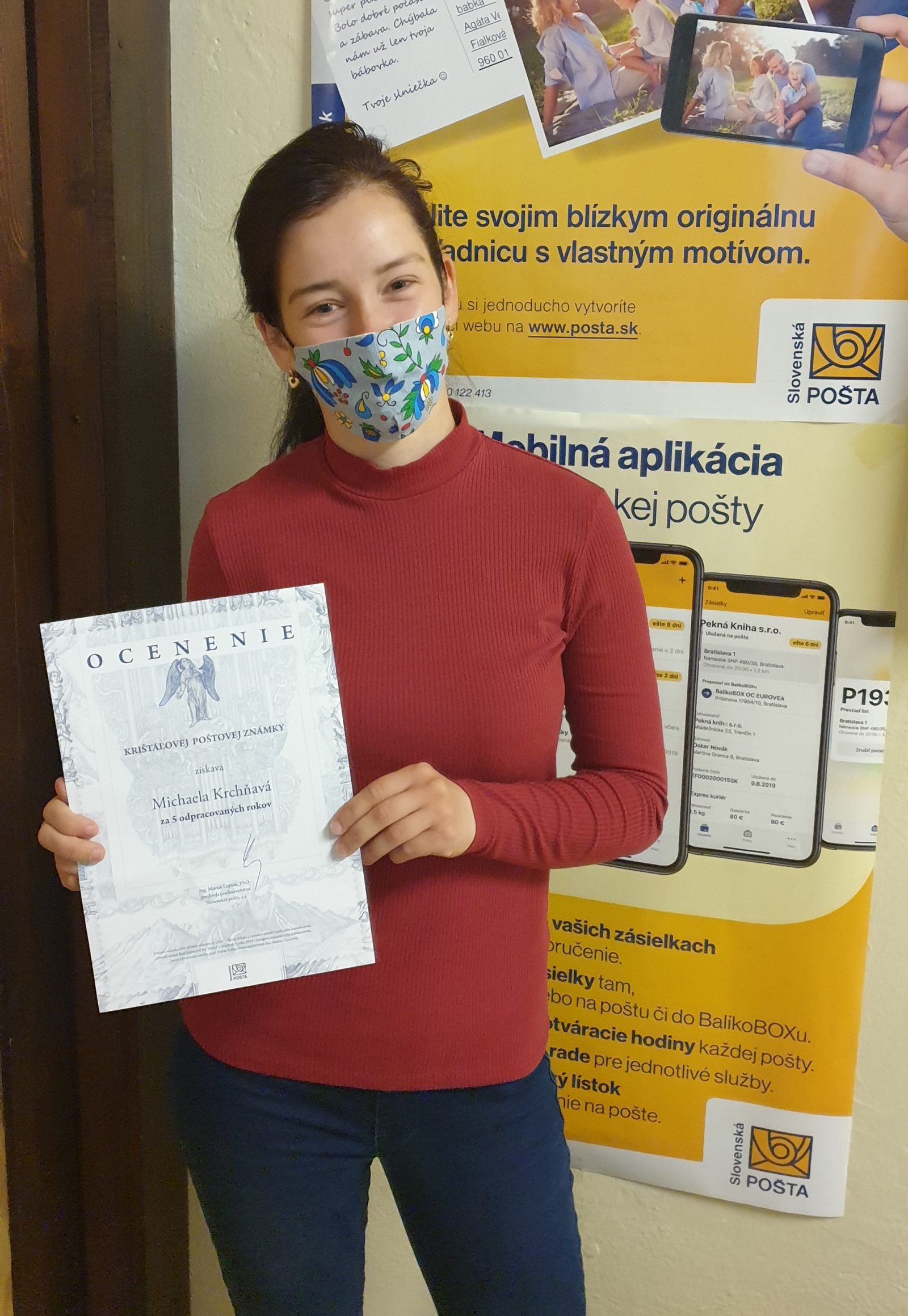 Dobrý deň, som vedúca na pošte Sološnica a mojej doručovateľke prišlo ocenenie za odpracovaných 5 rokov. Miška je veľmi šikovná, milá k ľudom a zákazníkom a nemá problém s prácou, ktorá sa od nej vyžaduje. Ľudia ju majú radi a ja si veľmi vážim to, aká je. Som rada a vďačná, že je súčasťou práve nášho kolektívu😊.
