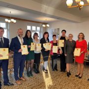 Melinda Burdanová, výkonná riaditeľka Poštovej banky, Martin Ľupták, generálny riaditeľ Slovenskej pošty, Jaroslav Kmeť, štátny tajomník Ministerstva dopravy a výstavy s autorkami námetov – Kristínou Gubienovou a Nelou Šoučíkovou pri otvorení Vianočnej pošty 2021 a inaugurácii vianočnej známky.
