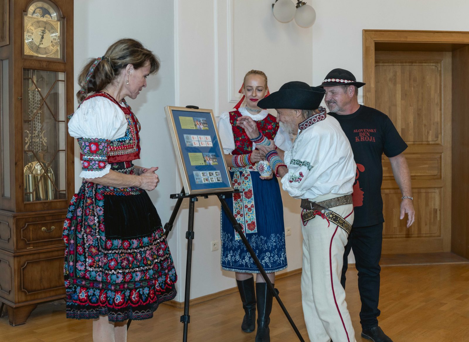 Slávnostného aktu uvedenia poštových známok sa zhostila Mária Reháková a folkloristi Jaroslav Moravčík a Ján Petrenka. Náš generálny riaditeľ, Vladislav Kupka vysvetlil prepojenie Slovenskej pošty s folklórom: „Pohľad na naše krásne kroje je podobne pôsobivý ako pohľad na poštové známky. V oboch prípadoch ide o umelecké diela“.