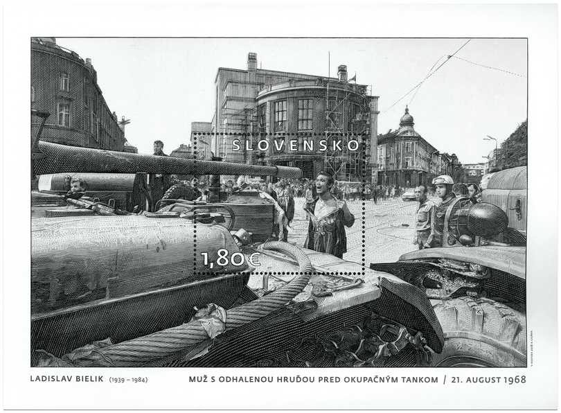 Poštová známka bola vydaná 21.08.2018 pri príležitosti 50. výročia nenásilného odporu občanov Česko-Slovenska proti invázii vojsk Varšavskej zmluvy. Výtvarné návrhy tejto emisie realizovali v súčasnosti najlepší známkoví tvorcovia: akad. mal. Vladislav Rostoka (grafický dizajn) a akad. mal. Rudolf Cigánik (oceľorytina).