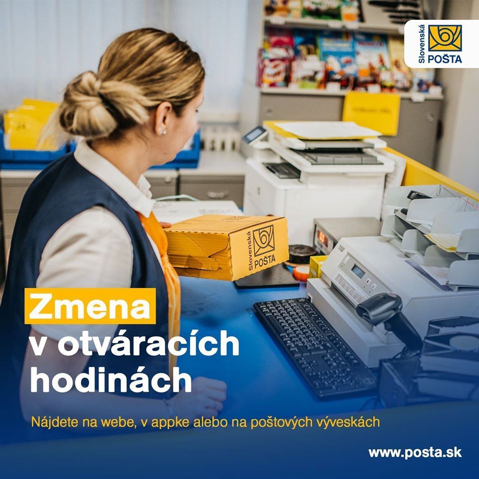 Na poštách až do odvolania platí PRÍSNY ZÁKAZ VSTUPU BEZ RÚŠKA alebo inej ochrany tváre, napríklad šálu alebo šatky na zakrytie úst a nosa. Kto nedodrží tento zákaz, tomu nebude umožnený vstup do priestorov pošty. Toto opatrenie platí od utorka 24. marca všade. Povinnosť nosiť rúško majú všetci obyvatelia pri opustení svojich obydlí. Bez rúška nesmiete ísť do obchodu, na prechádzku do parku, ani von so psom.