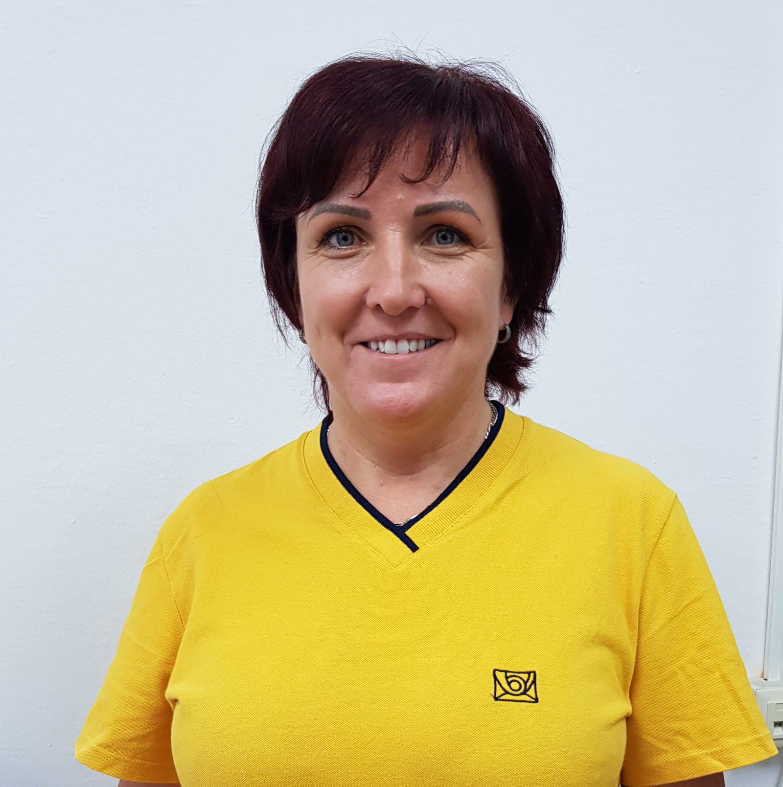 pani poštárka Michaela Zbiňovcová. Je to milá, pracovitá, príjemná a vždy usmiata