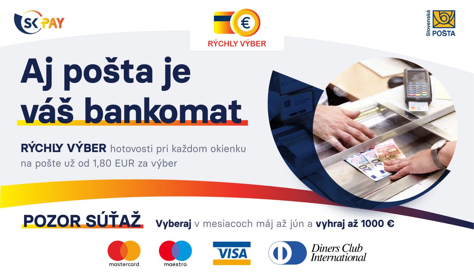 Slovenská pošta, a.s., v spolupráci s SPPS, a. s. (od 1.7.2021 SKPAY, a. s.), pripravila v období od 1. mája 2021 do 30. júna 2021 marketingovú akciu k produktu Rýchly výber s názvom „Aj pošta je Váš bankomat“.