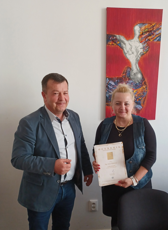 Milá Anka, prajeme Ti ešte veľa energie, zdravia a pohody v našom kolektíve. Veríme, že aj naďalej budeš so svojim zmyslom pre optimizmus a lojalitou nezabudnuteľnou súčasťou veľkej rodiny Slovenskej pošty. Za celý kolektív osobne zablahoželal ku krásnemu pracovnému výročiu a Ocenenie za 30 rokov pôsobenia na SP, a.s., odovzdal riaditeľ úseku služieb, Ing. Milan Hlinka.