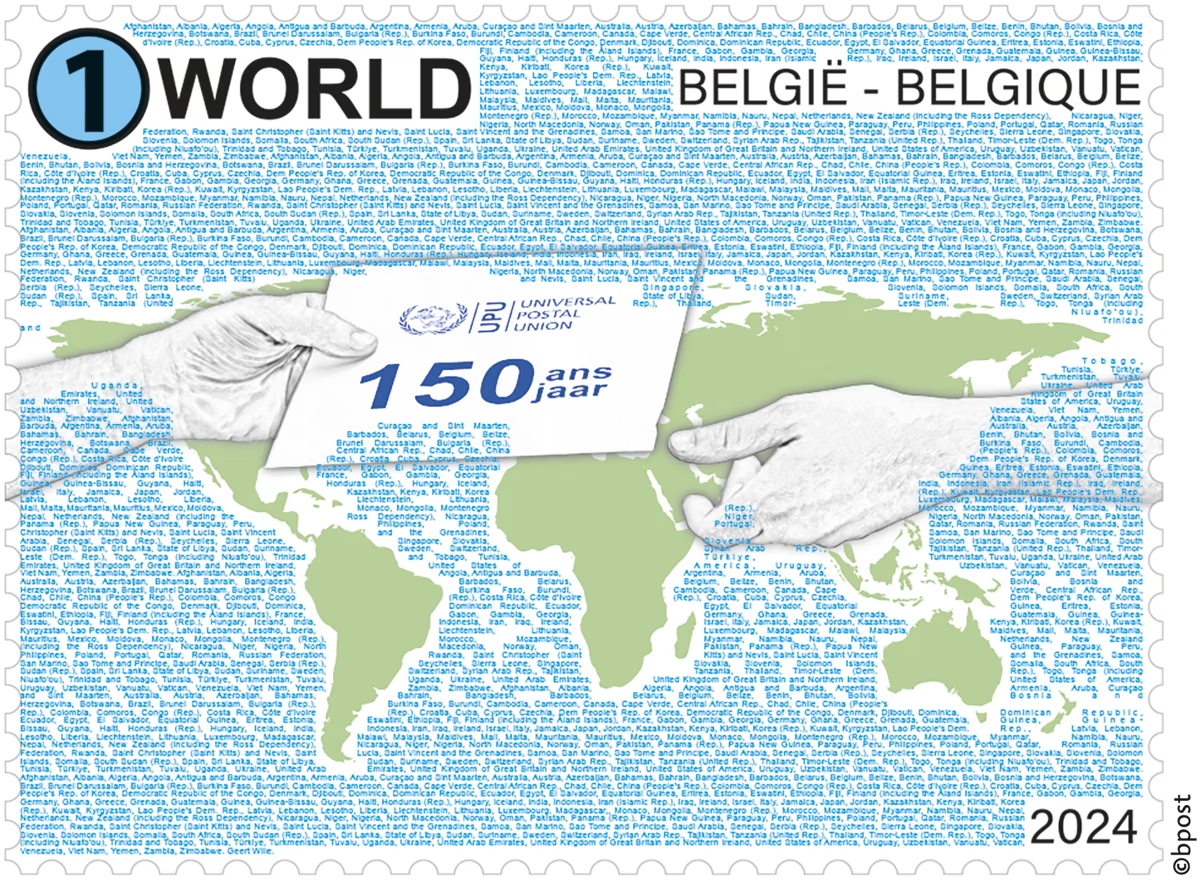 Pri príležitosti 150. výročia založenia Svetovej poštovej únie (UPU) vydala belgická pošta – spoločnosť bpost limitovanú edíciu poštovej známky so špeciálnou typografiou. Výnimočnosť tejto príležitostnej známke spočíva vo vloženom texte, ktorý má 2024 slov, čo je svetový rekord! Vloženie toľkých slov do tak malého priestoru a zároveň zabezpečiť, aby boli dokonale čitateľné, bolo neuveriteľnou výzvou, ktoré bolo zvládnuté zo strany belgickej pošty bravúrne.