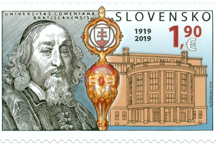 Slovenská pošta vydá 27. 6. 2019 poštovú známku „100. výročie Univerzity Komenského“, s nominálnou hodnotou 1,90…