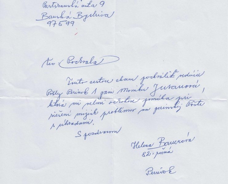 Dobrý deň, touto cestou chcem poslať pani Kataríne Somorovskej, pracovníčke Slovenskej pošty v Pezinku 4,…