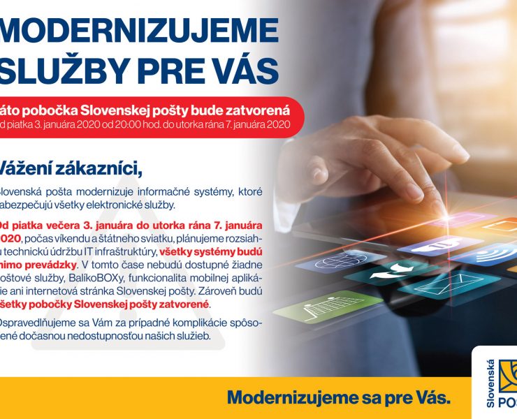 Slovenská pošta modernizuje informačné systémy, ktoré zabezpečujú všetky elektronické služby. Plánovaná rozsiahla údržba informačných systémov…