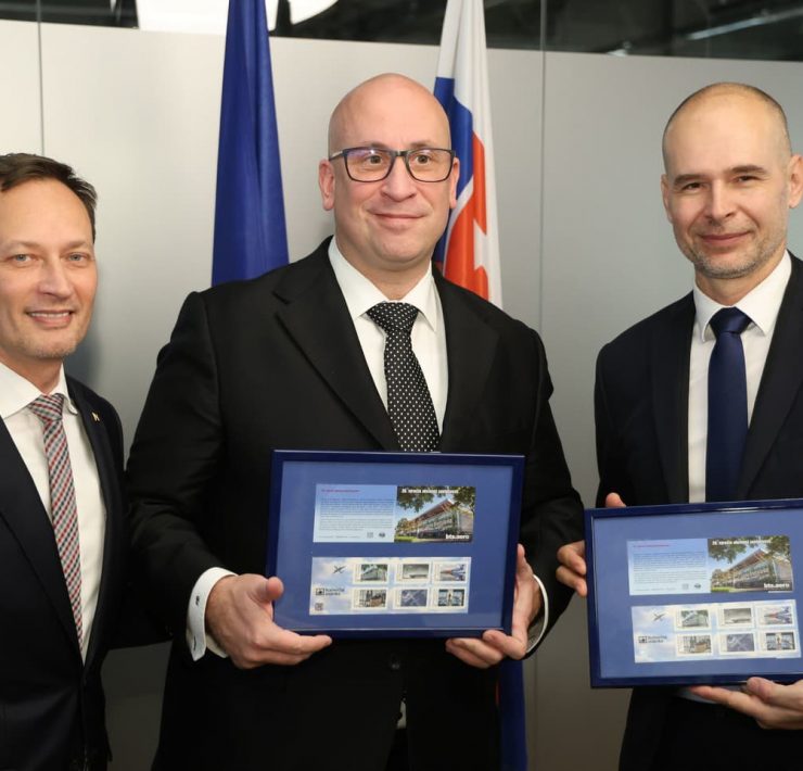 Šesticou poštových známok si Letisko M. R. Štefánika pripomenulo 20. výročie samostatnej akciovej spoločnosti, ktoré dovŕšilo v tomto roku. Komerčné známky s pozadím súčasnej aj historickej budovy terminálu letiska, s historickým lietadlom…